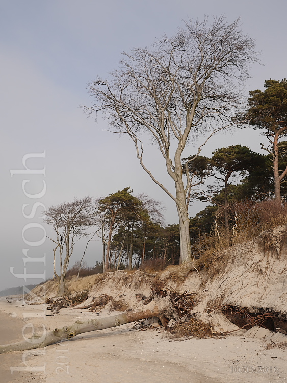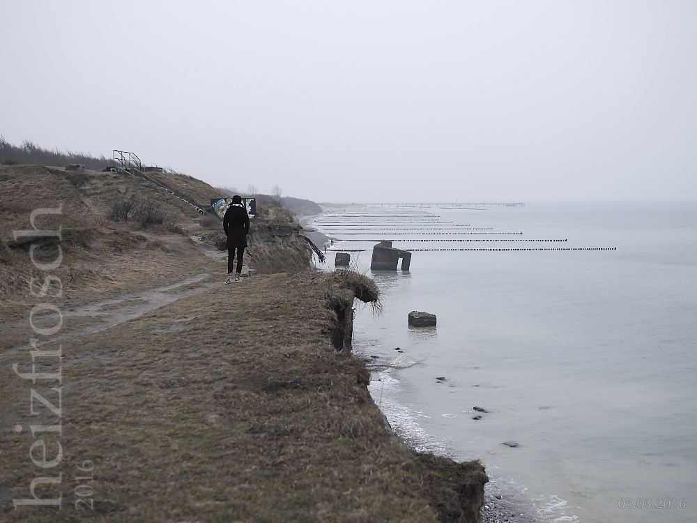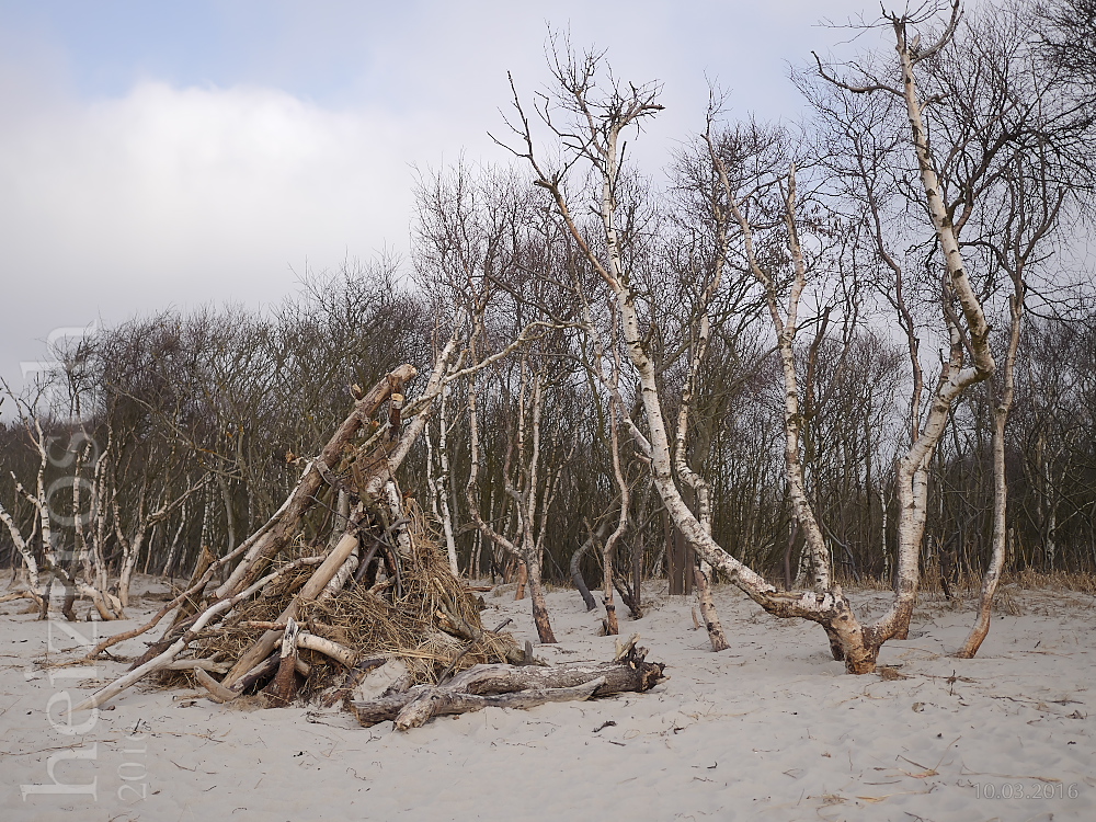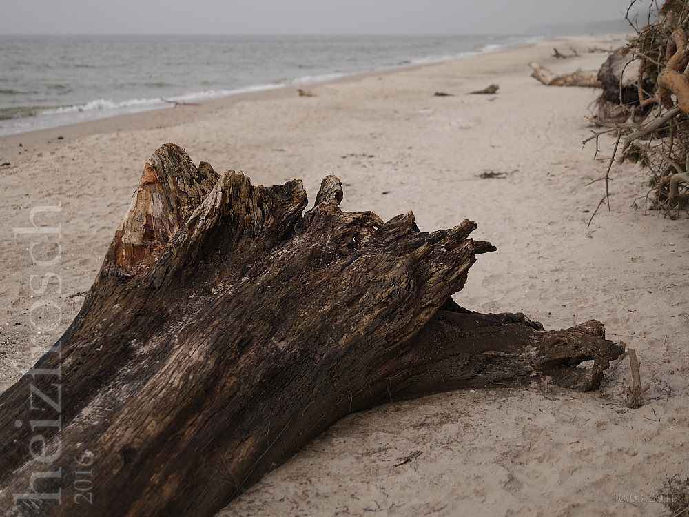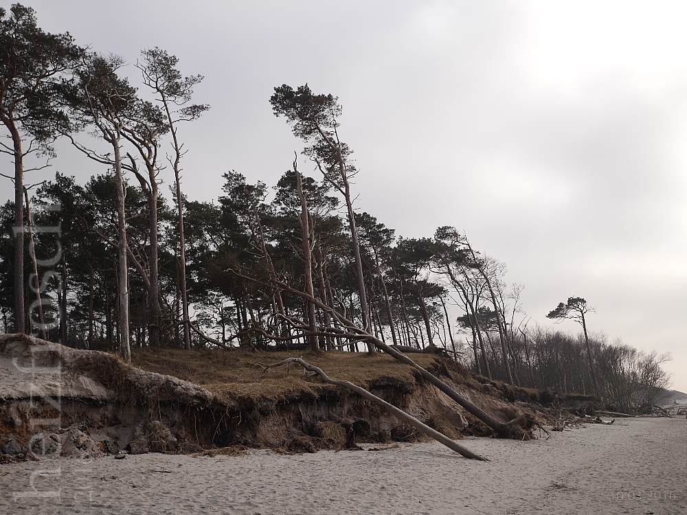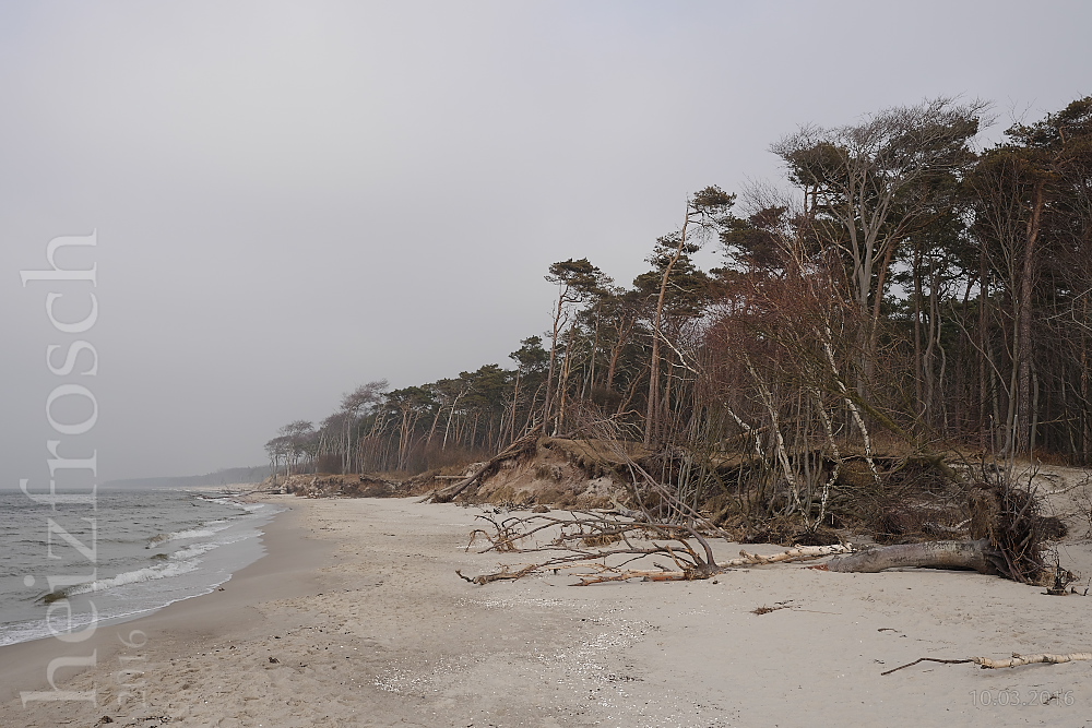 Solotag mit Grauwetter. Ich beschnuppere die Reste der alten Darßeisenbahnstrecke bei Pruchten und verziehe mich anschließend noch kurz zum Weststrand.